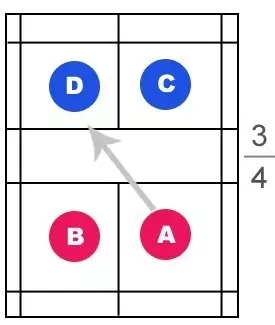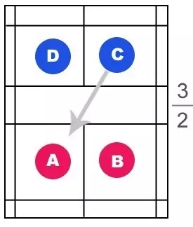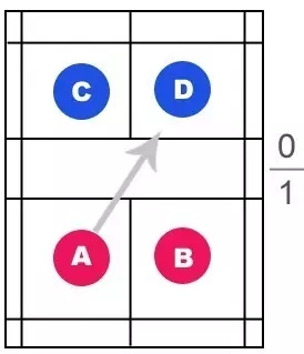 2、A和B得1分。A和B交换发球区。A从左发球区再次发球。C和D在原发球区接发球。1-0从左发球区A发球,D接发球。